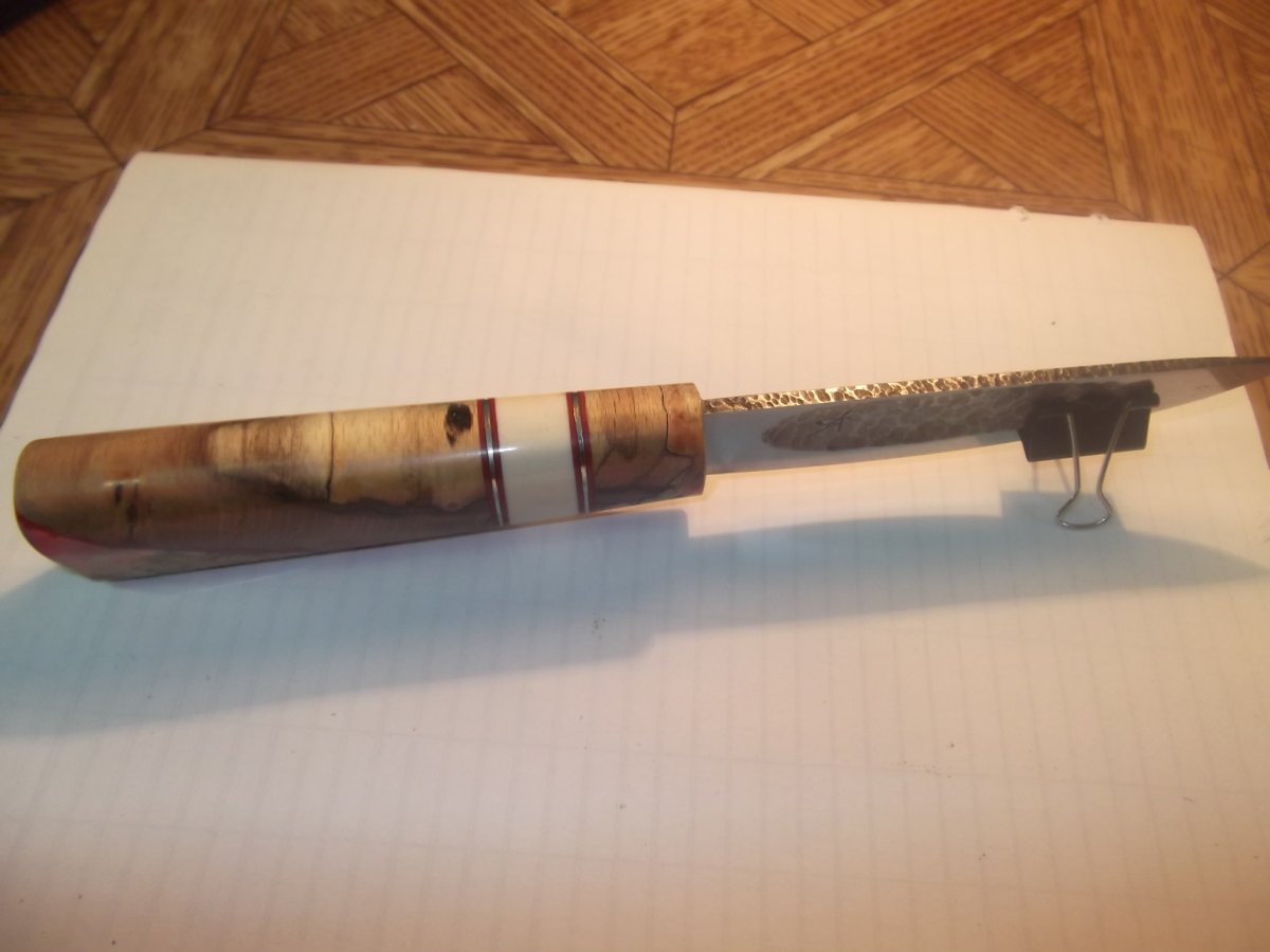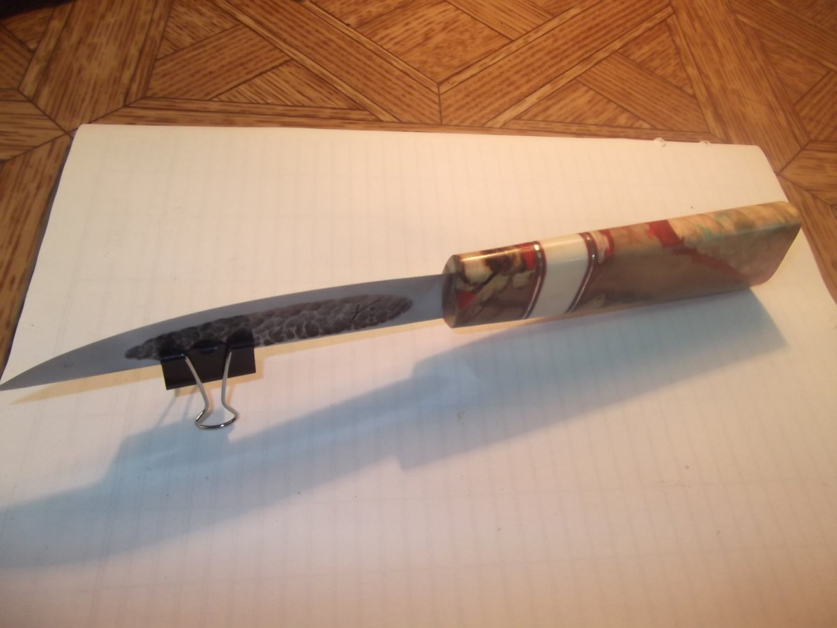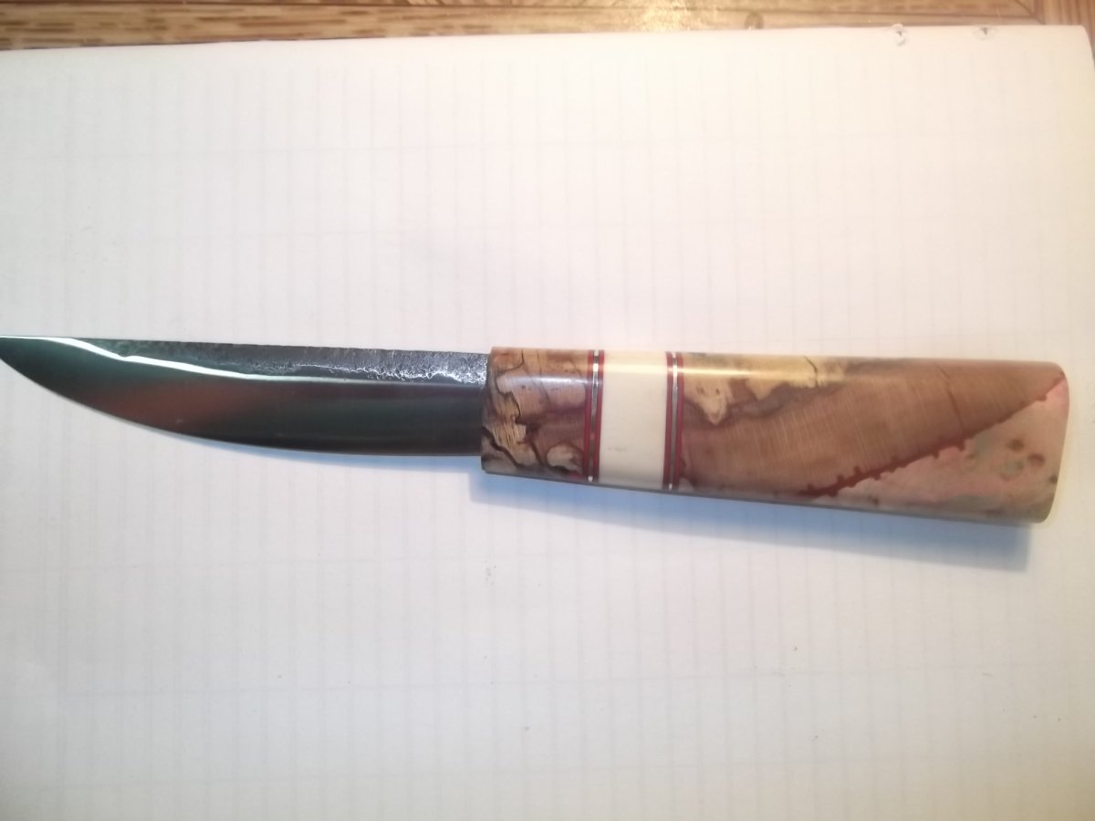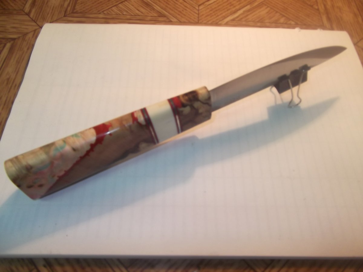 клинок от "Апостол Сашко" сталь ШХ-15 длина клинка - 126 мм ширина клинка -27 мм обух -у основания 3,2 мм рукоятка стабилизированный -гибрид шпальт бука , кап клена ,акрил вставки - мельхиор , рог оленя ,фибра. общая длина рукоятки -125 мм форма - "яйцо" хотелка 1500 гр . оплата на карту П-Б . Отправка за счет покупателя Н-П , интайм ,деливери , Укр пошта +10 гр , возникнут вопросы пишите