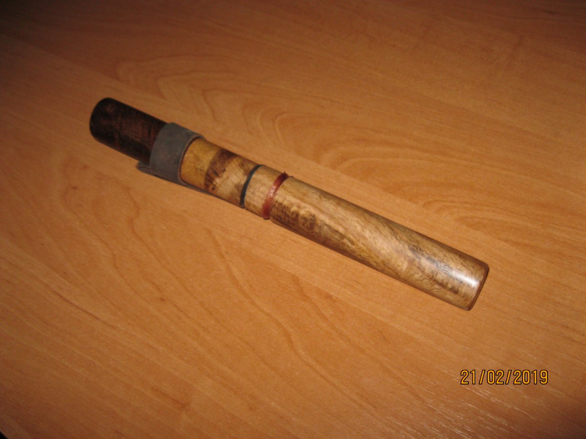 Якут. Сталь 95х18. Длина лезвия 127 мм, ширина 23 мм, толщина 4 мм. Общая длина ножа 252 мм. Рукоять кап канадского клёна, вставка кап акации. Ножны кап канадского клёна, кожа. 900 гр.