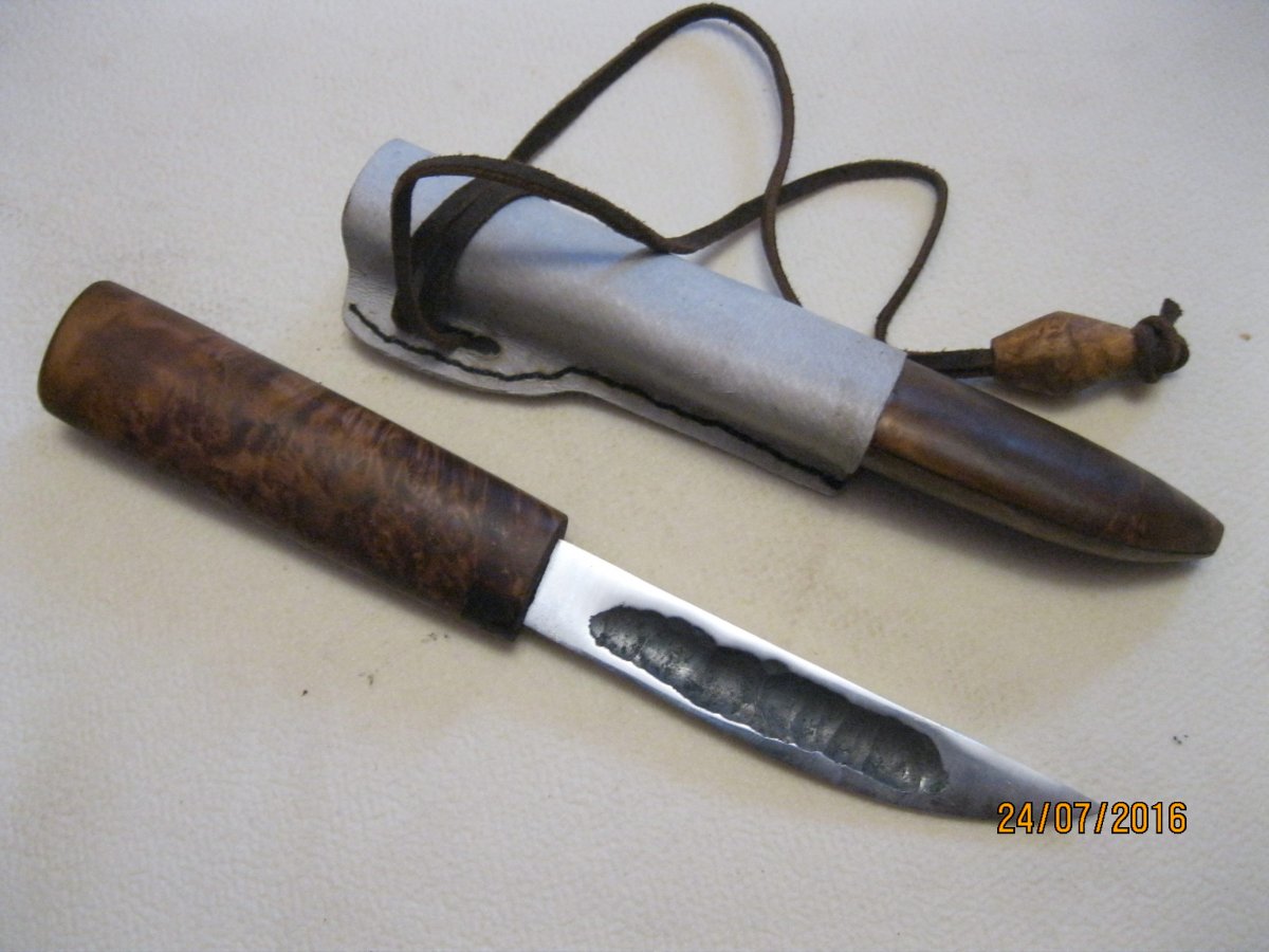 якут.сталь 95Х18.длина 122,ширина 20,толщина 3 мм.общая длина 241 мм.рукоять кап ольхи,ножны сувель ольхи,кожа. 400 гр.
