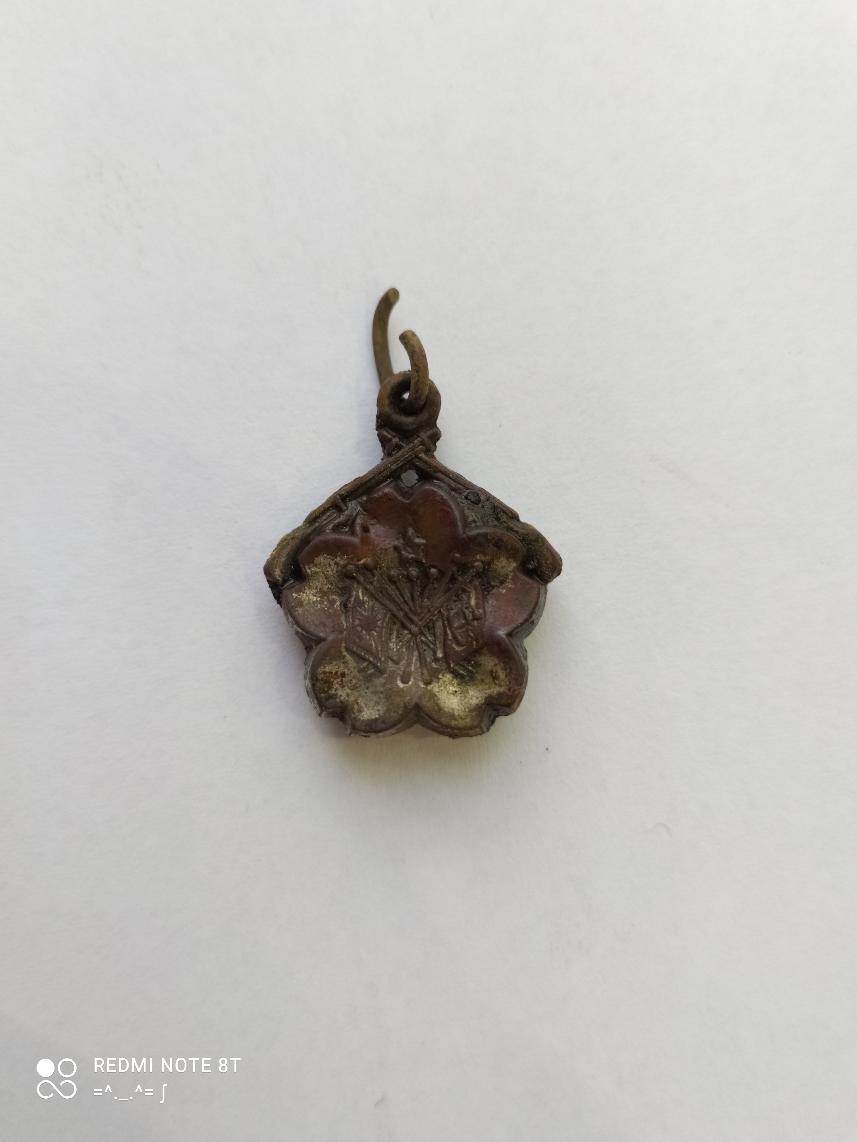 Підкажіть будь ласка по кулончику. Мені здається що він японський і попав сюди в часи японсько російської війни Я думаю що японський тому що: 1- квітка схожа на сакуру 2- видно прапор японської імперії 3- прапор з якорем