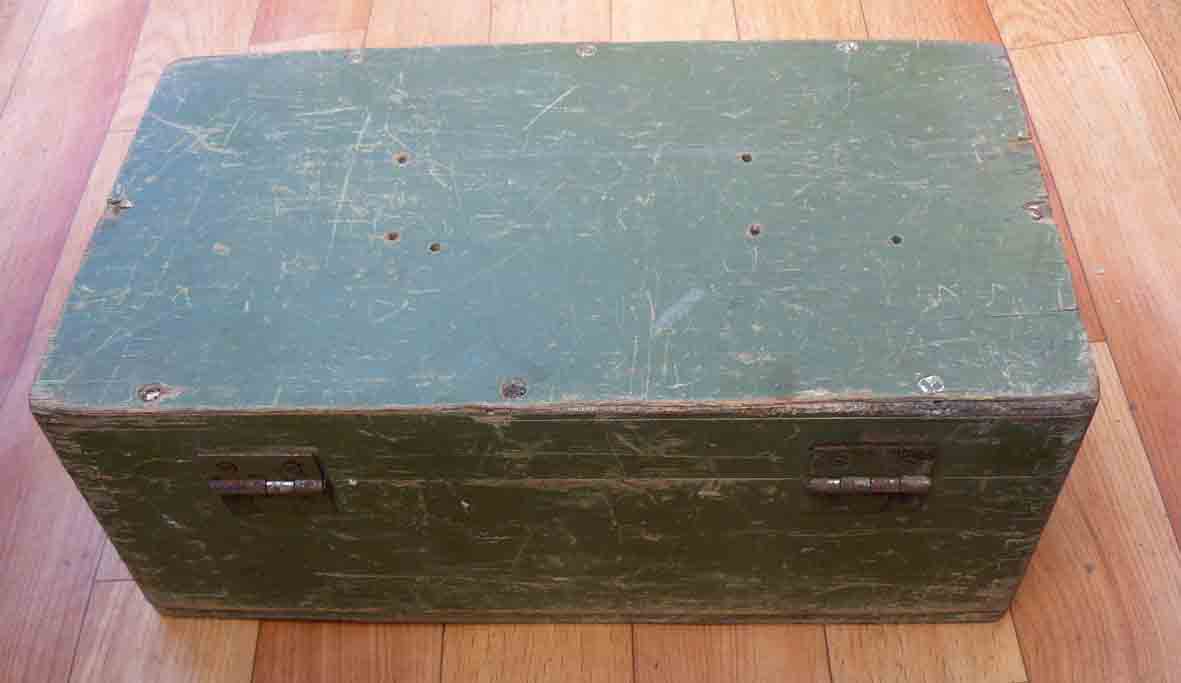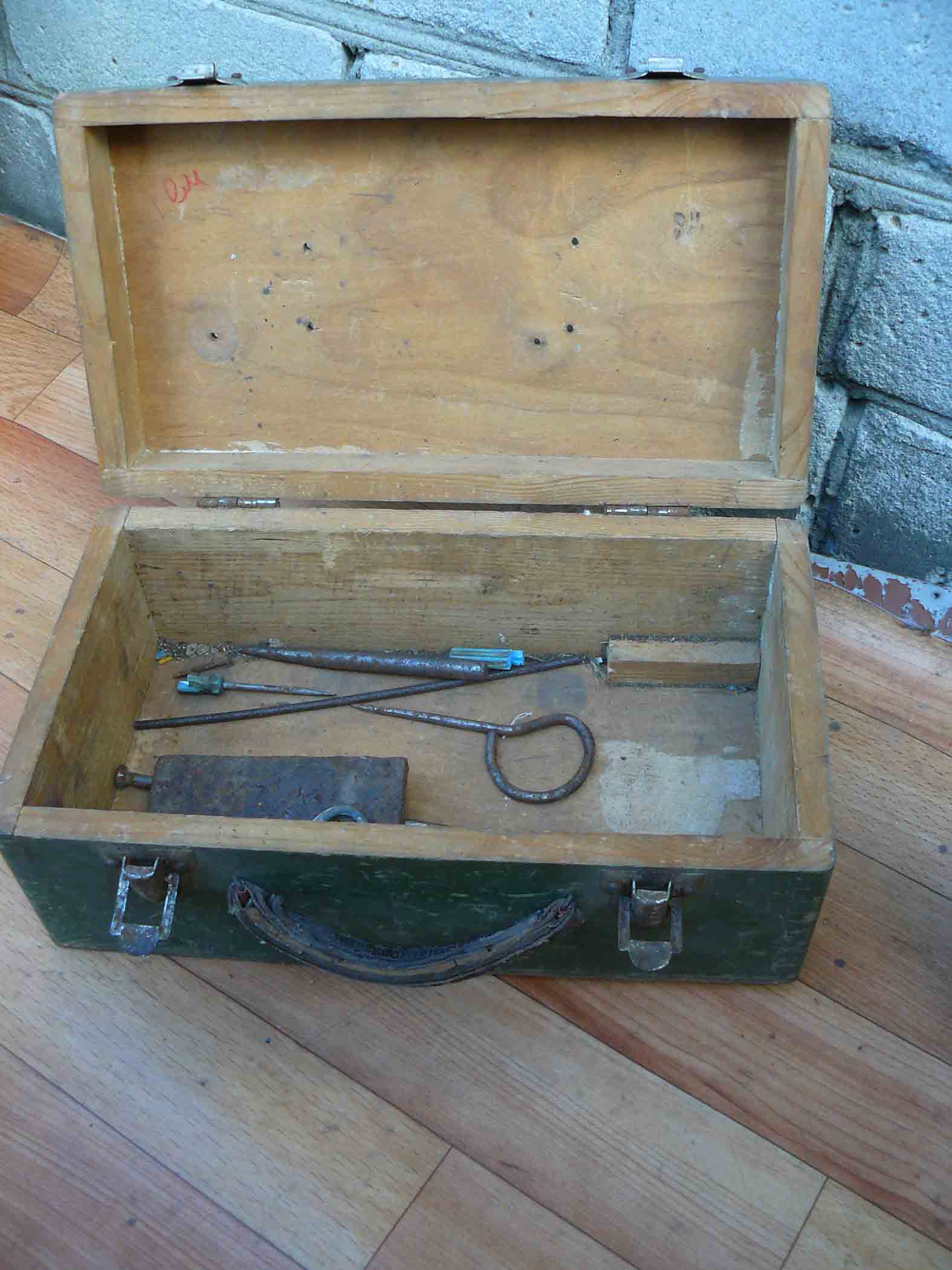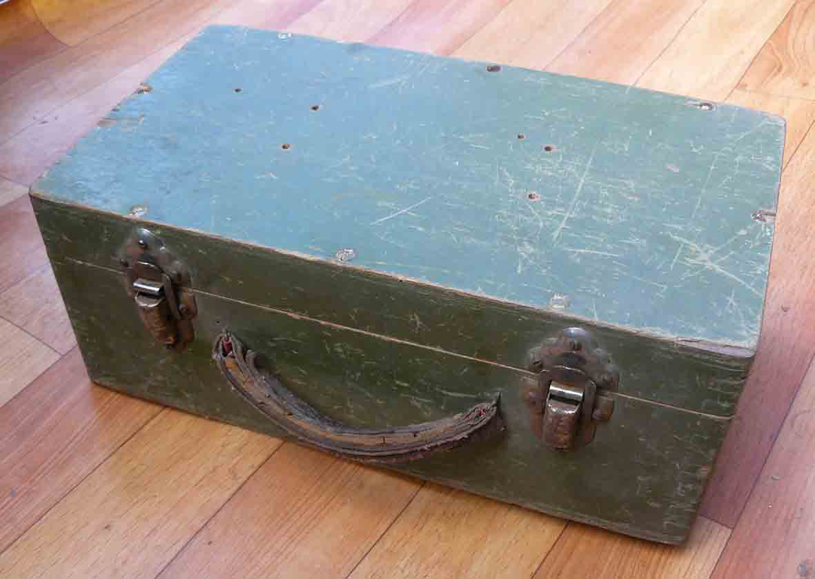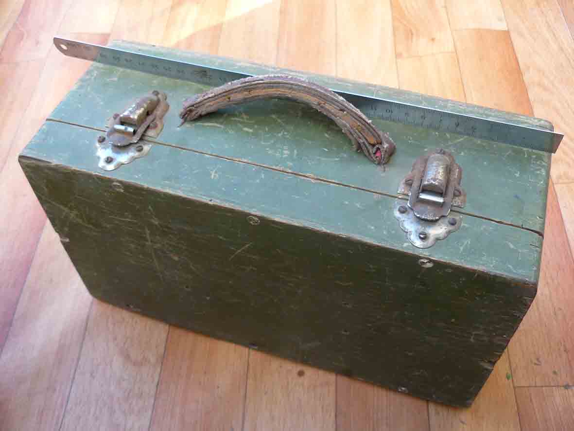Помогите в определении дедушкиного ящичка. Сделан добротно, имеет кожаную ручку. На замках надпись Мос ШТАМП. В крышке отверстия для какого-то крепления.