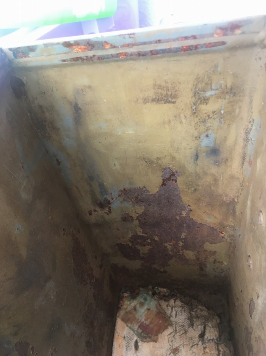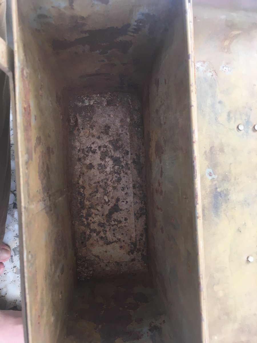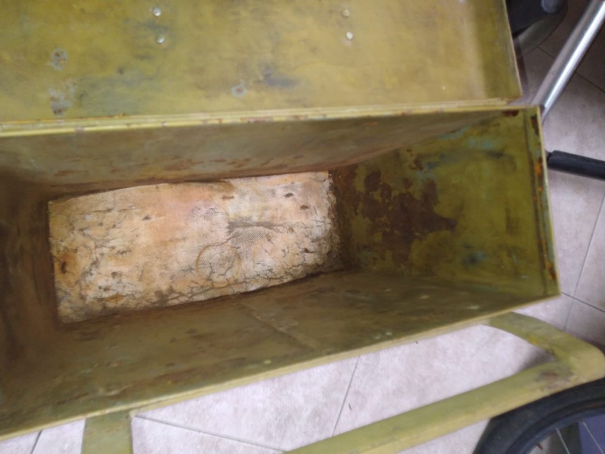 Там ржавчина. Я то лист вьІтащил ( фото состояния нутрянки прилагаю, там и ржавчина и фельдграу в полньІй рост), но после всего написанного камрадами вместо оценки - решение продать ящик по месту утвердилось. Ибо вместо оценки предмета начинается тупо сбивание стоимости. Нет - так нет.