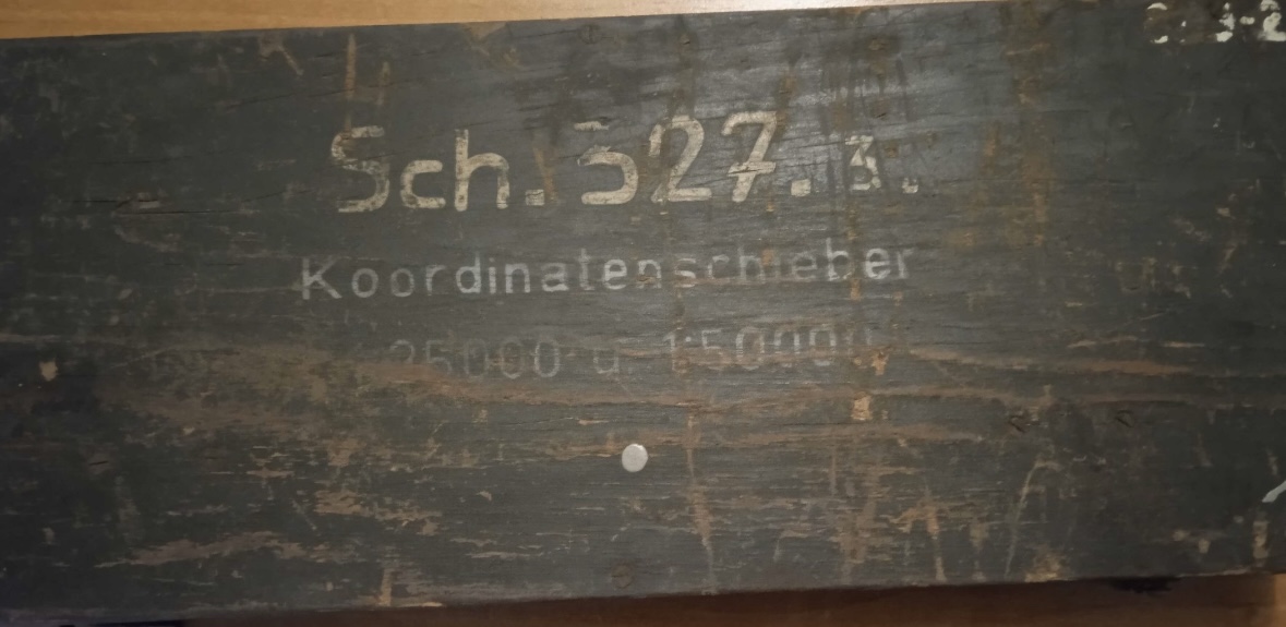 ...вимірювач (перевОдчик) координат Sch.327.3 (за Вєрмахт...) KoordinatenSchieiber Sch.327.3 масштабів (карт) 1 : 25000 та 1 : 50000 для картографії та/або артилерії