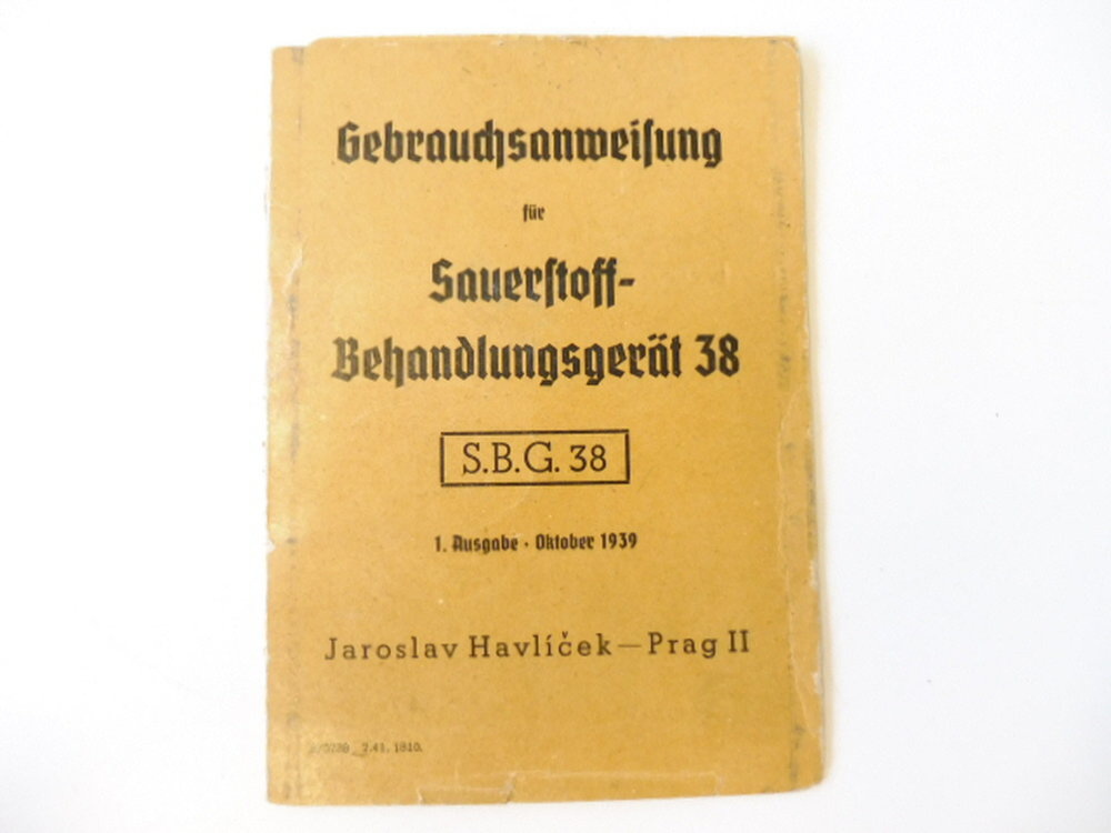 S.B.G.38—аварійний кисневий апарат зразка 1938 року. Нижче знімок обкладинки інструкції до нього.