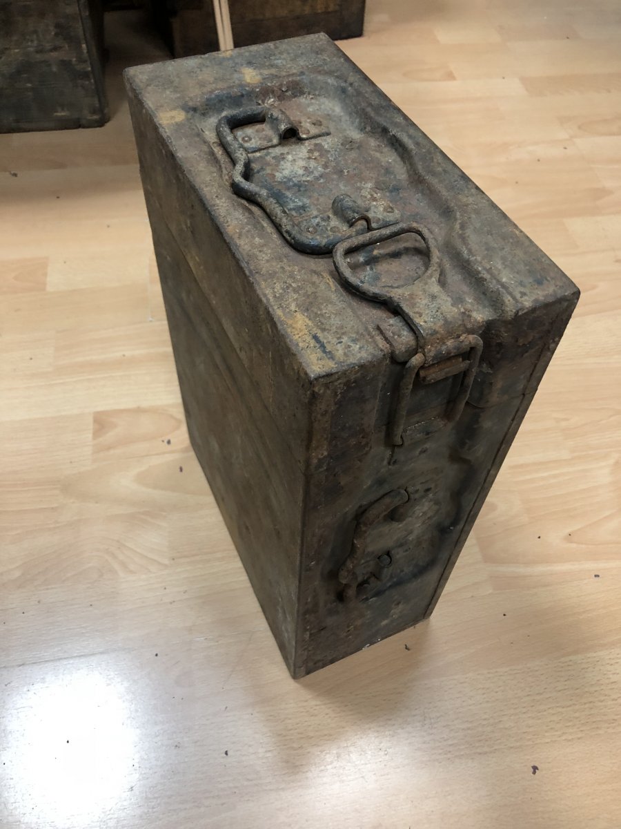 . Находили такую с остатками зипа. Внутри деревянная форма была, в которую разные штуки укладывались.
