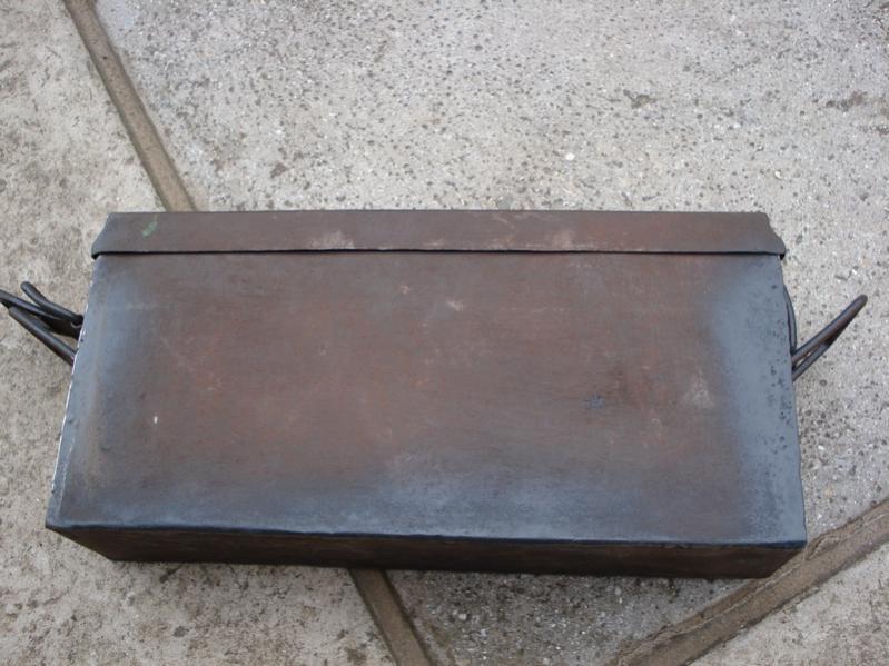 Лот №2: ящик железный, метал крепчайший клейма присутствуют. Была примята одна сторона, что-бы исправить пришлось отрезать одну сторону отрехтовать и акуратно заварена оргоном. Дед хранил в нём подшипники с трактора всё было в масле, поэтому метал крепкий без свищей. Цена 150грн
