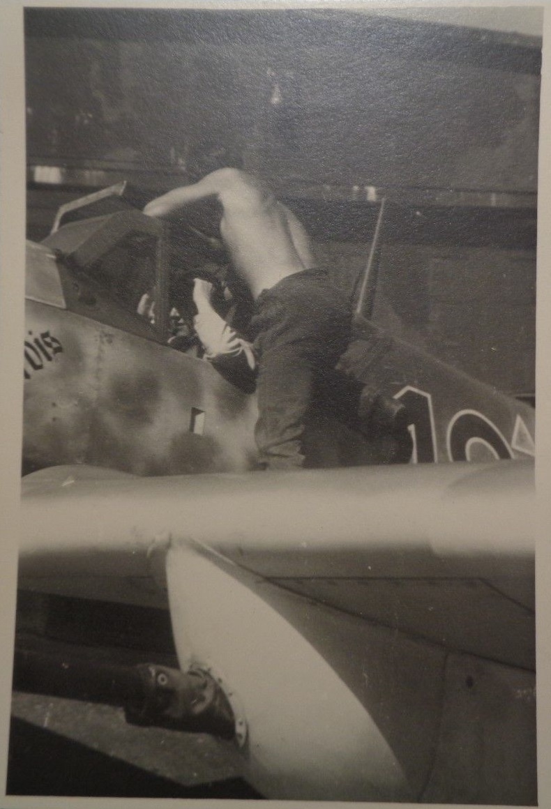 Канадцы осматривают сбитый в районе Крёлли (Creully sur Seulles) немецкий истребитель «Мессершмитт» Bf.109G-6/AS. Истребитель «Мессершмитт» Bf.109G-6 (серийный номер 441139) «желтая 7» из состава 6-й эскадрильи 11-й истребительной эскадры (6.JG 11) под управлением унтер-офицера Рудольфа Штрозецки (Rudolf Strosetzki; 31.05.1923 — 30.06.2012) был сбит американским истребителем P-47 и совершил вынужденную посадку, пилот взят в плен. На момент пленения Рудольф Штрозецки имел на своем счету одну победу над американским истребителем P-51, одержанную 28 мая 1944 года.