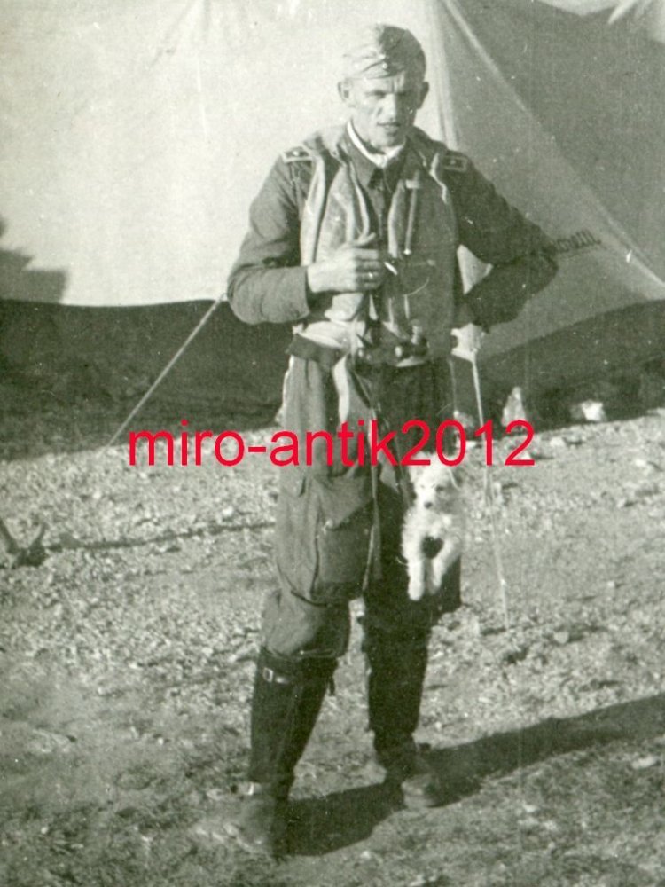 Pilot Liebhold, JG27 mit dem Staffelhund Rhodos Griechenland Pilot Liebhold, JG27, Bereitschaft, Rhodos, Griechenland Piloten, JG27 mit dem Staffelhund Wussl, Rhodos Griechenland Piloten, Bf 109, JG27, Bereitschaft, Rhodos, Griechenland Pilot Liebhold, JG27, Fliegerbereitschaft, Libyen