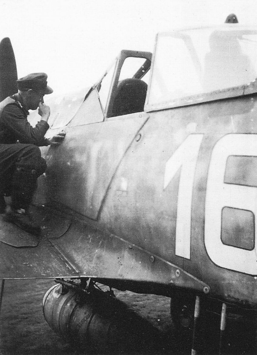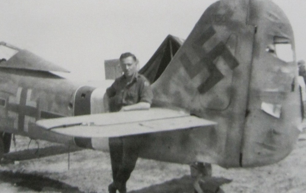 Это унтер Фридрих Зенк из 13./JG4 возле Bf-109G-14/AS WNr.460337 "Белая 4" с именем 'Christel', фото 1 ноября 1944. За день до того, как будет на ней сбит и получит ранение Инфа©Эрих Момбек