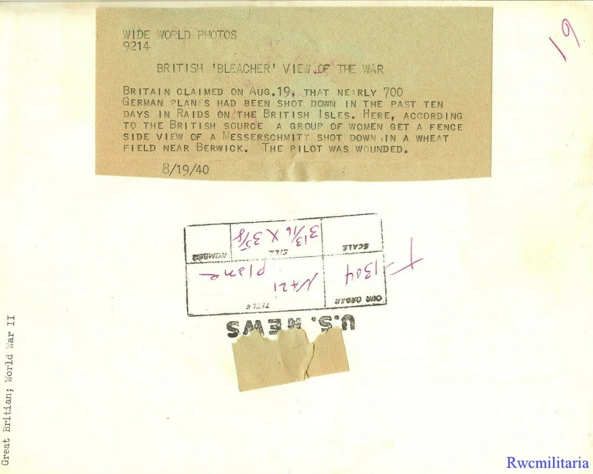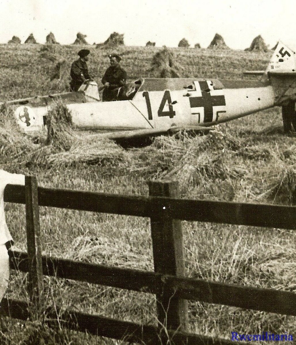 #310 1) "Encounter in the Afternoon" by Paul Nash. Chalk and watercolour, 1940. Image courtesy Manchester City Art Gallery 2-4) This artwork ↑ is based on a Me109, flown by Unterofficer Leo Zaunbrecher from 2./JG52, which came down at Mays Farm, Selmeston, Sussex on Monday 12th August 1940. It had been shot down by P/O JAP McClintock of 615 Squadron. 5) Zaunbrecher is with one of his groundcrew. 6) The aircraft was taken to a salvage dump where publicity photos were taken showing the emblem of 2./JG52 (in German 'Rabatz' - troublemaker) being cut from the fuselage. https://bbm.org.uk/airmen/NashEncounterAfternoon.htm