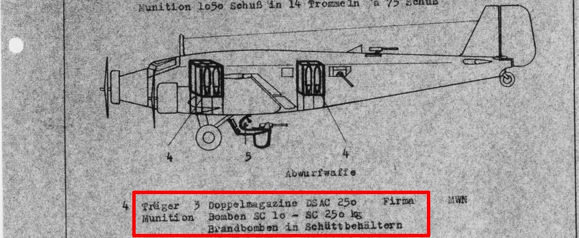 например заряжались в три вертикальные сдвоенные кассетные стойки DSAC 250, максимум шесть бомб 250 кг.