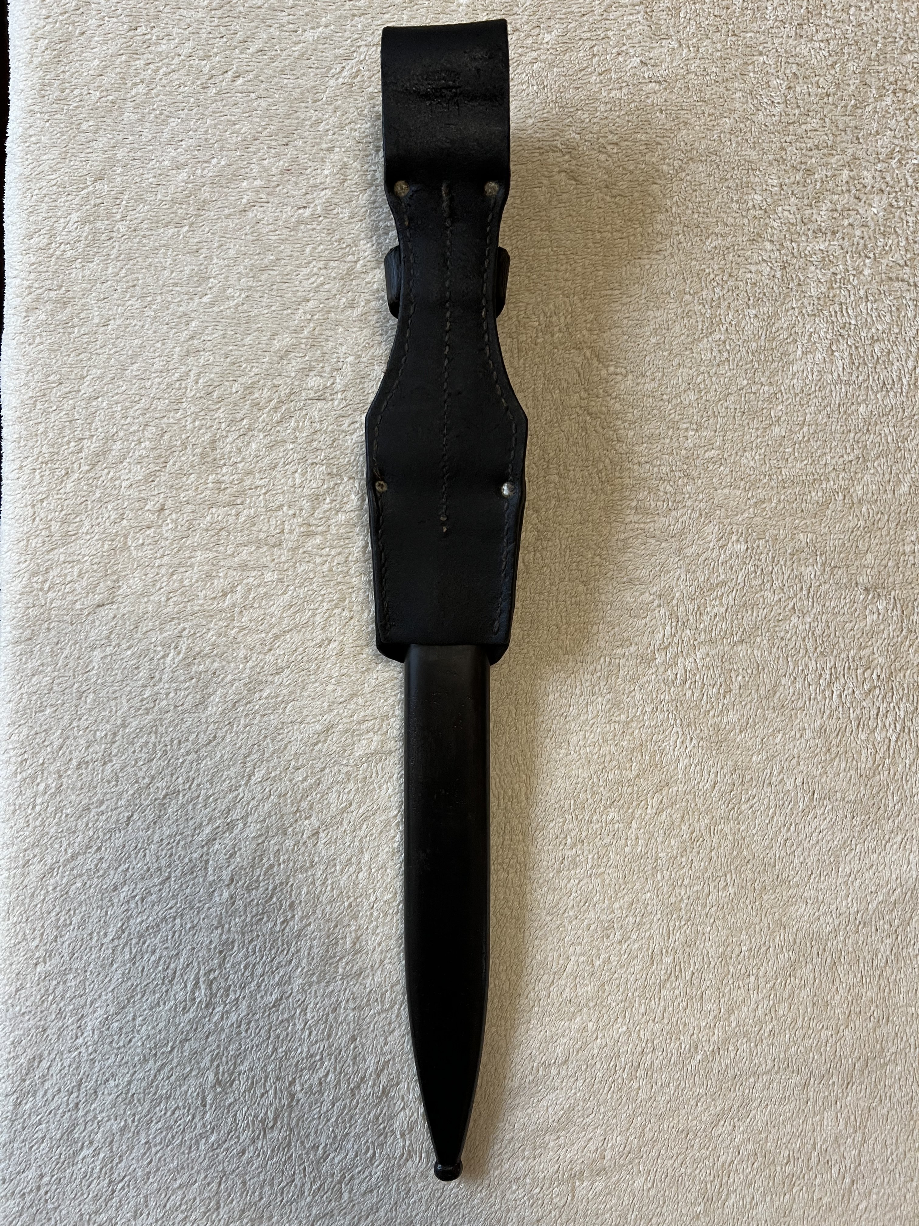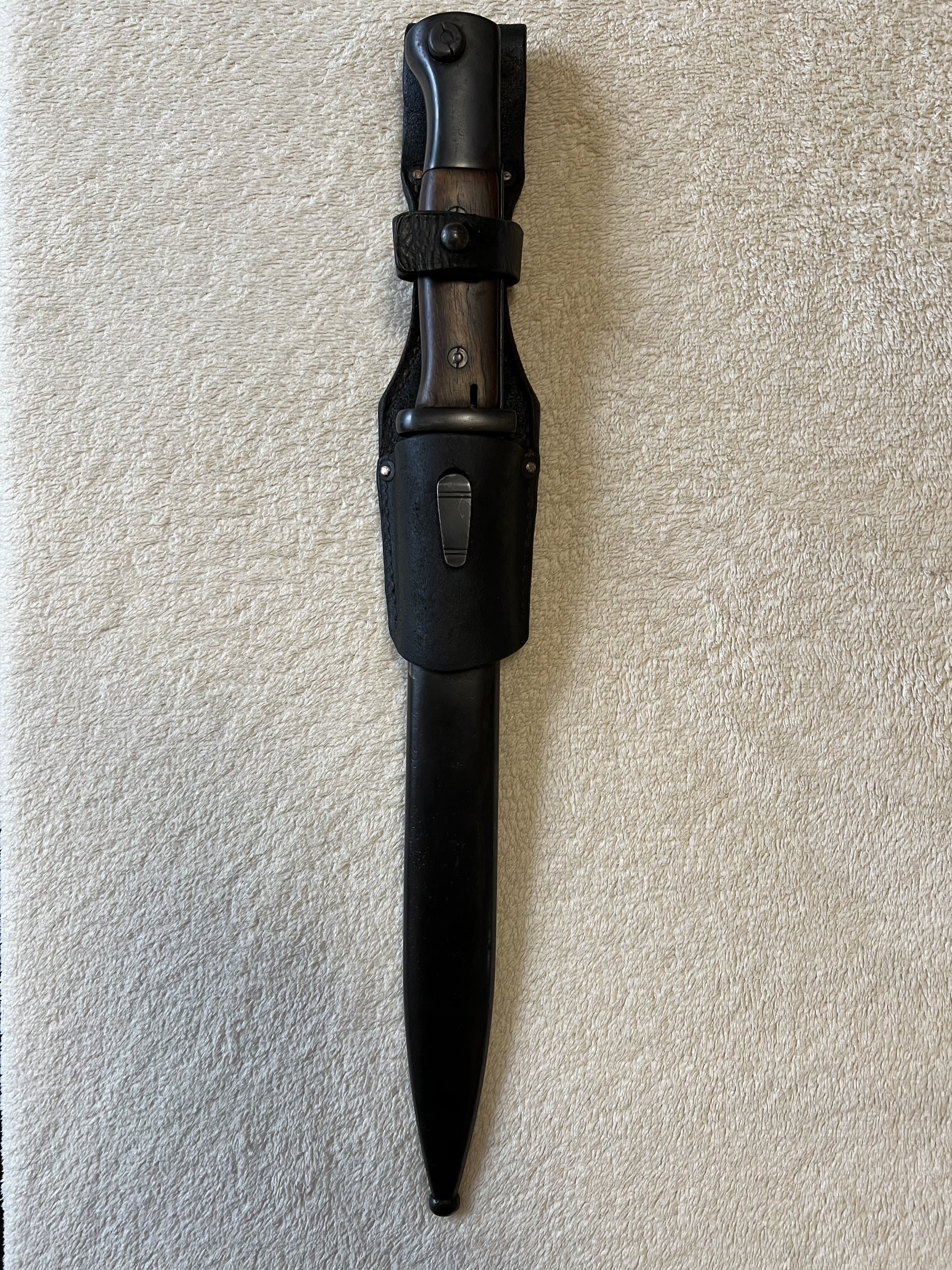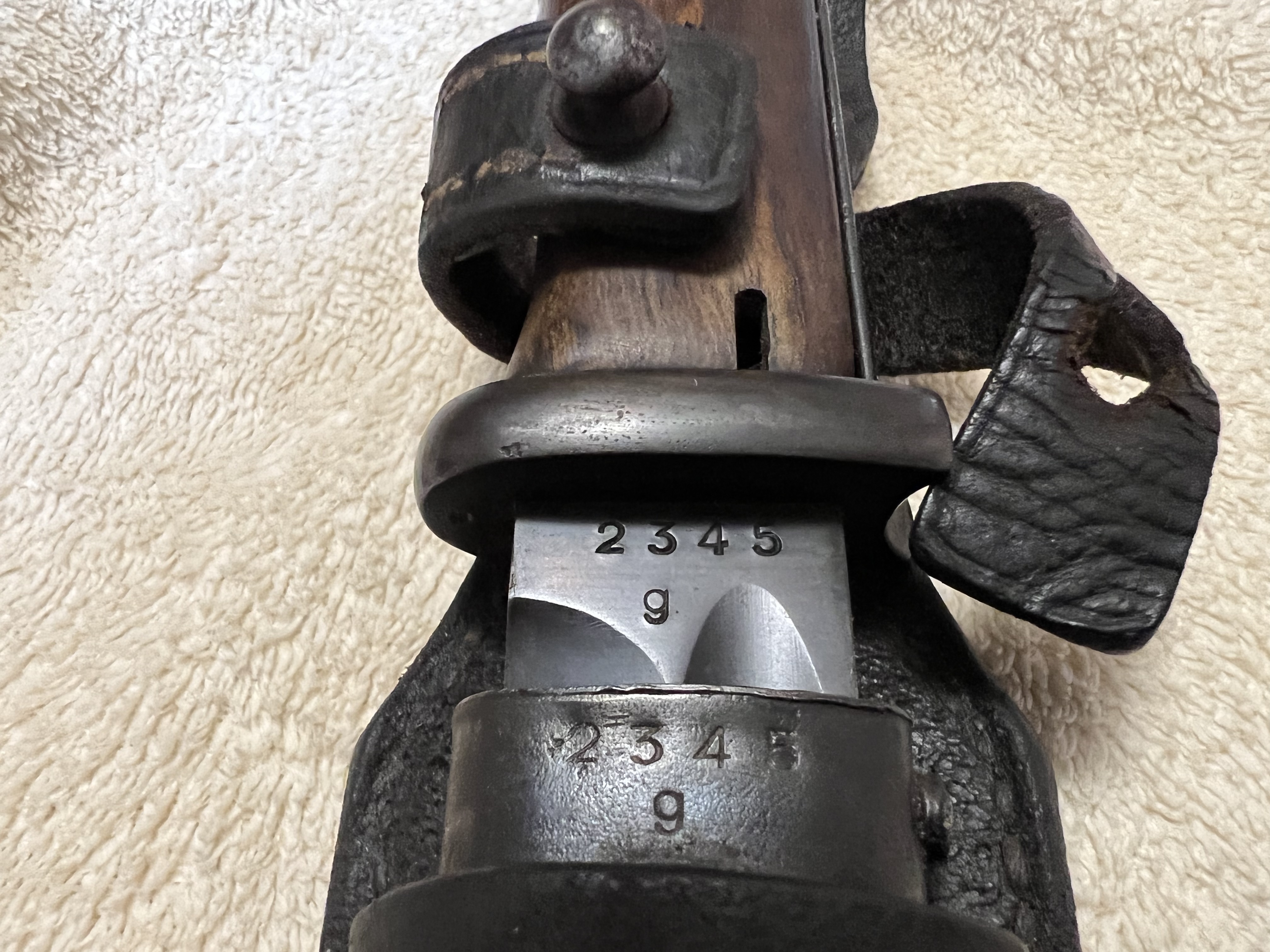 Всем здравия! Прошу оценить штык. Был смазан солидолом, который с годами превратился в корку. Родной сбор, клин в родном воронении.