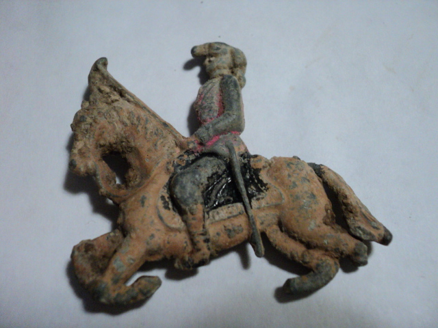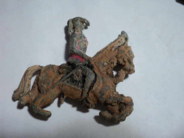 Сегодня выкопал свинцового всадника и два зацепа. Фигурка был раскрашена. Что можно сказать о этих находках? Найдены в бывшей Восточной Пруссии.
