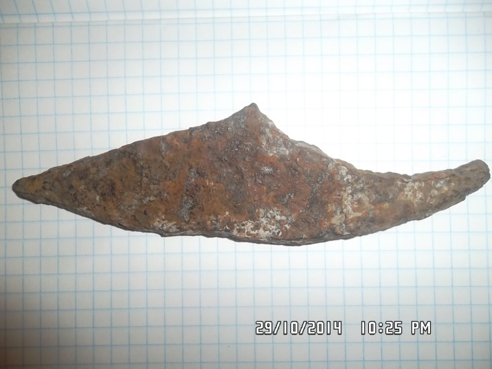 імім Здраствуйте по хоже на нож сопутка находкы по К.Р. наконечник топорик-амулет пуги гирьки ..металопластика .Может ето серповыдний нож..подскажыте кто в теме.С одной стороны сточен