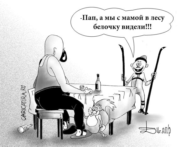 Белочку я не видел , хотя кажный божий вечер для сугреву принимамши был.. Только вороны , вароны и сороки по йолкам скакали...