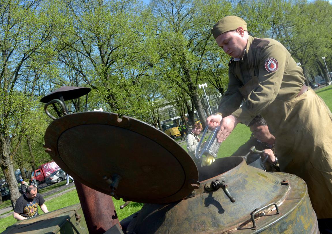 Далее.. 1) Каждый год ставят полевую кухню , где готовят фронтовую похлёбку.. 2) Кому окопная еда не по нутру , могут отведать традиционное блюдо Победы. Мангалы хоть от памятника отодвинули в этом году... 3) Ну ярмарка и ярмарка , а чо ??? 4) Всё чинно , культурно , по европейски.. 5) Бомболюки в готовности принять пассажиров. Вещь то нужная.... 6) На людей в правильном прикиде запрет с пункта 4 не распространяется. 7) Стариков искренне жаль.... Но эта помпезность не для них... 8) Один из главных "виновников" торжества... Если чего найду ещё интересного выложу..