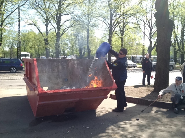 Как и обещал от ещё нашлось... Тут просто ссылку на альбом дал, первая и начало второй страницы меня просто в экстаз приводят http://foto.delfi.lv/ru/album/104752/?page=1 Ну и ещё надёрганных... : 1) Полицаи около 20 мирно празнующих задержали.. За неподчинение или за алкогольное состояние.. 2) Кто то решил вечный огонь развести , но полицаи пресекли эту попытку 3) " Строчит пулемётчик за синий платочек..." 4) Пан спортсмен... 5) Вот ОНО - блюдо ПОБЕДЫ!!!