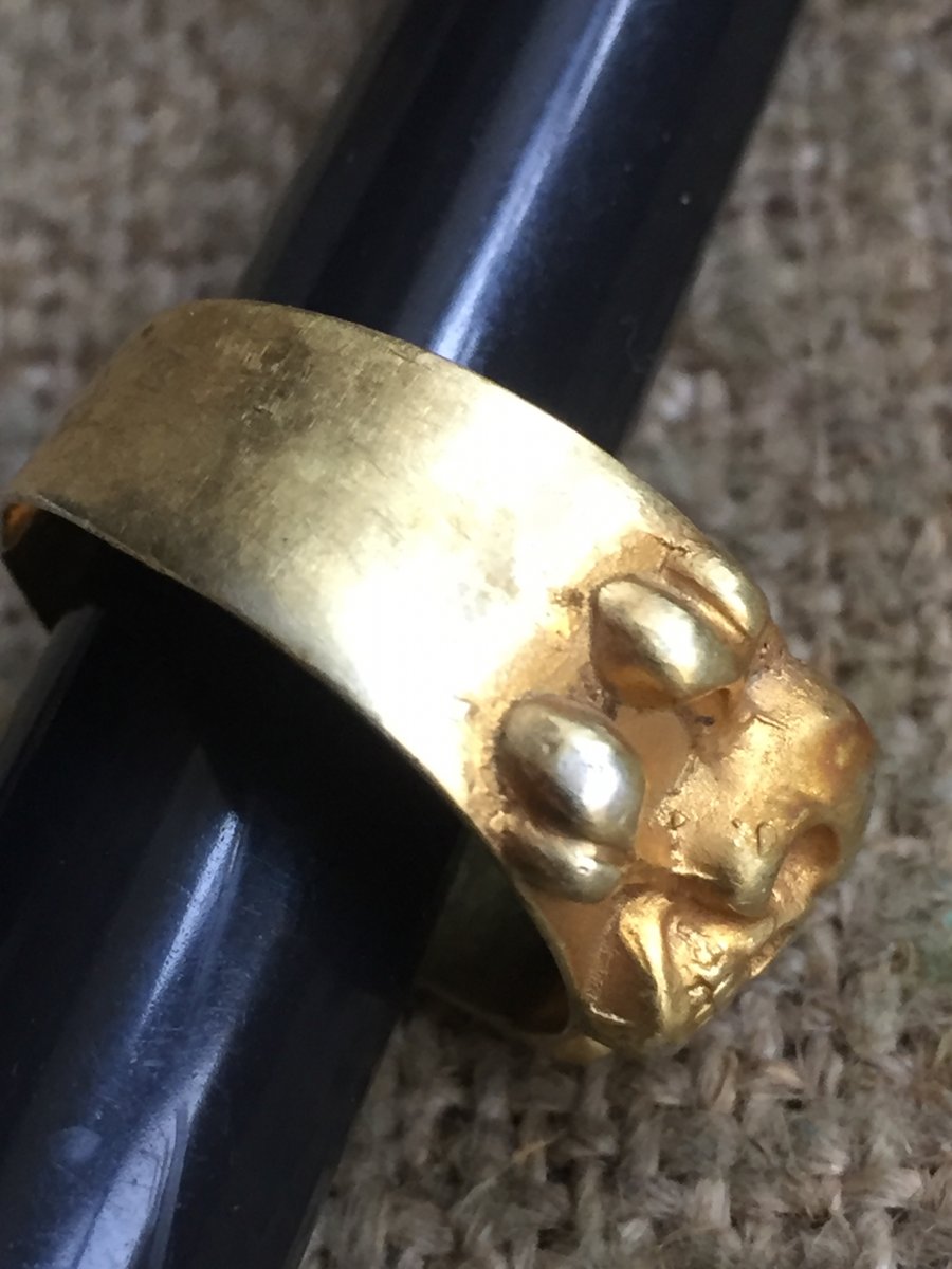 Кольцо не ношенное вообще. Кольцо изготовлено из двух деталей . Голова -литье , кольцо-пластина. А шо , за 1200грн сейчас кто то купит?