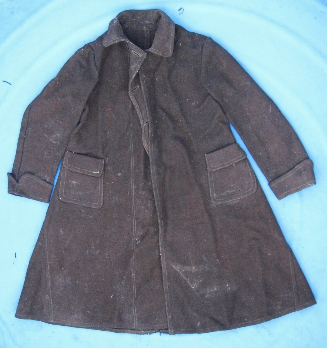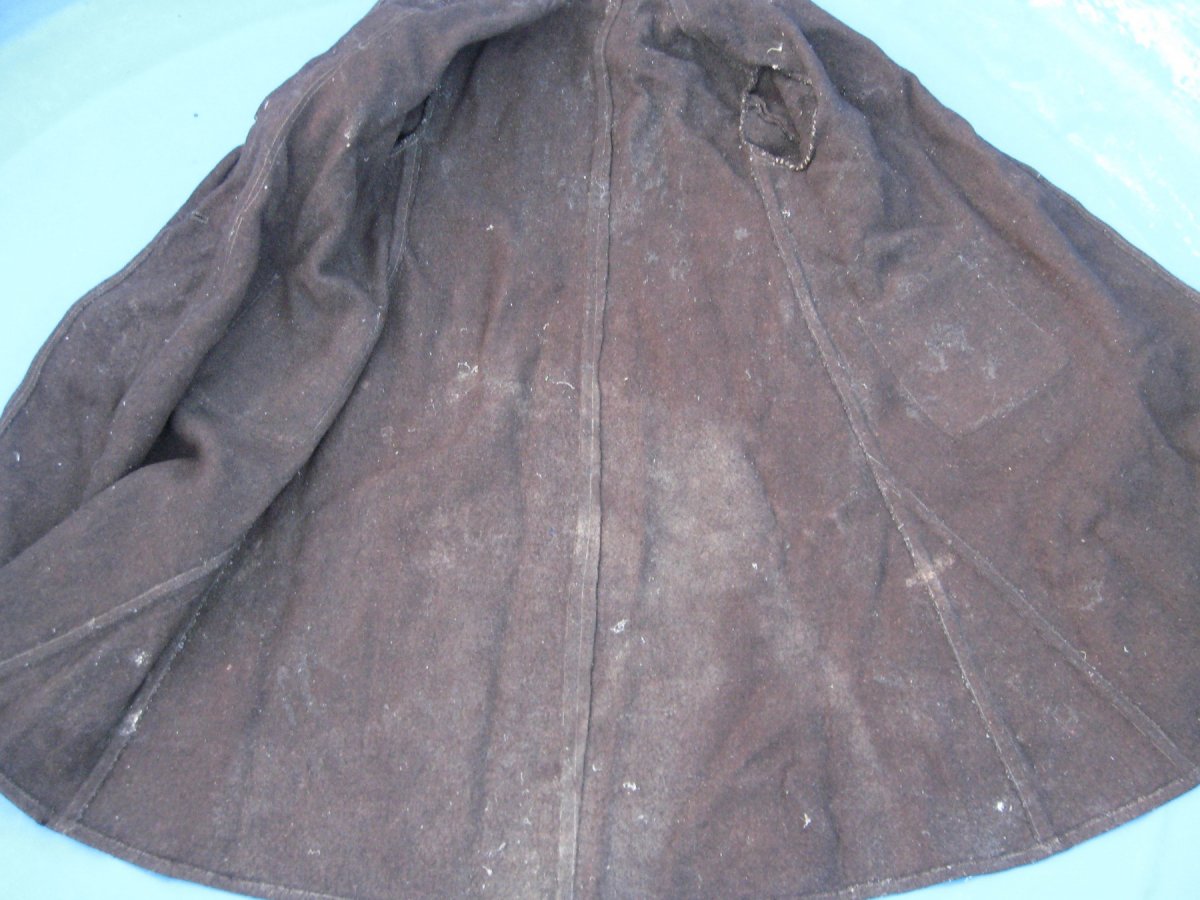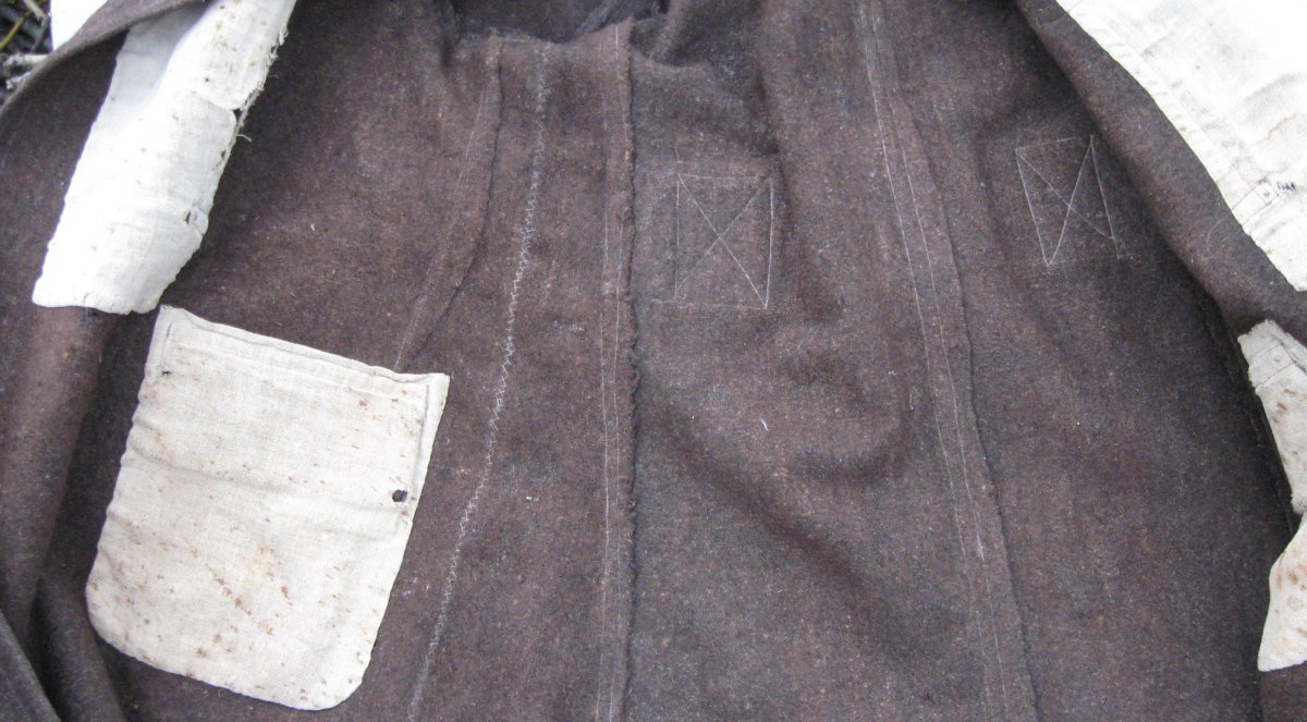 Материал домотканное сукно (такое еше у нас по селам в 30е-40 годы делали на домашних ткацких станках) Встречал похожие вещи.Они интересны тем, что в этих изделиях прктичные селяне умудрялись соеденять традиционный,архаичный крой верхней одежды который не менялся с 18 века (прямоспинная выкройка,объем в подоле за счет вшитых боковых клиньев(вусов),ручной пошив ,ластовица под рукавом и современные на 30-50е годы представления о внешнем дизайне верхней одежды).Ну и по традиции эти пальт продолжали называть кобеняками или свытамы. Интерсно посмотреть изнанку изделия и швы.Она сшита в ручную или уже на машинке? С ув.