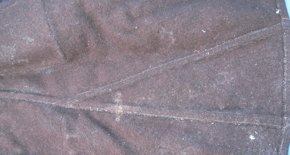 Для сравнения швов фрагмент снимка с иного изделия; Данное фото отношения к теме не имеет. На таком же изделии один шов "зигзаго" образный, не просматривается симметрия характерная для машинки, и как не спец могу лишь предполагать что вероятно делался в ручную. Другие швы прямые, и как бы с изломом. На одном из "конвертиков" так назову места скрепления просматривается "закрепка" что характерно для машины.