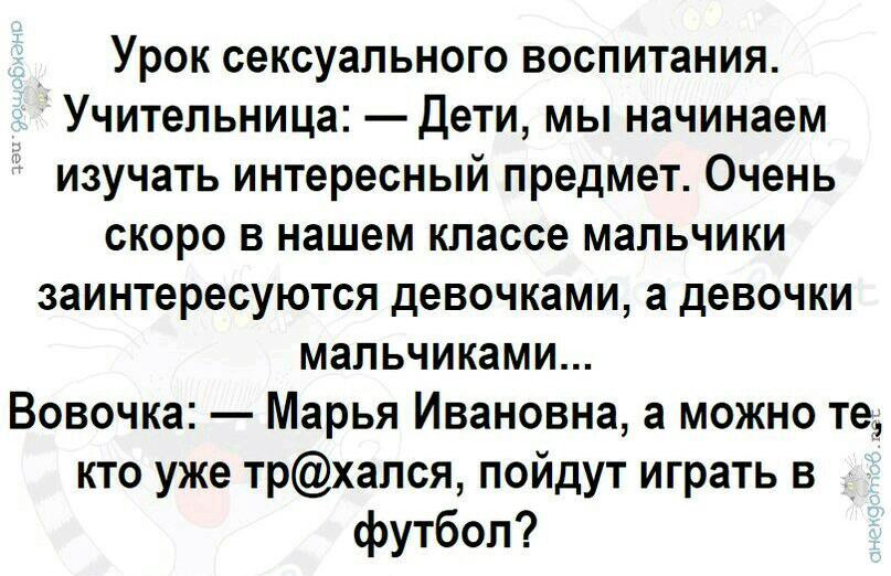 Во-во.. Помню старшие пацаны во дворе басни рассказывали о том, как грудь девичья твердеет, когда ее гладишь или фраза " я ее ипал, но до помидорчиков так и не достал". Все рты пораскрывали и слушают чушь. Только я малый, но уже не девственник встревал в разговор и зевая предлагал: " а може в карты? А?" Все начинали шипеть и хотели очередную басню послушать, а я все не мог понять, где у Светки помидоры?? Да и у Таньки их небыло...