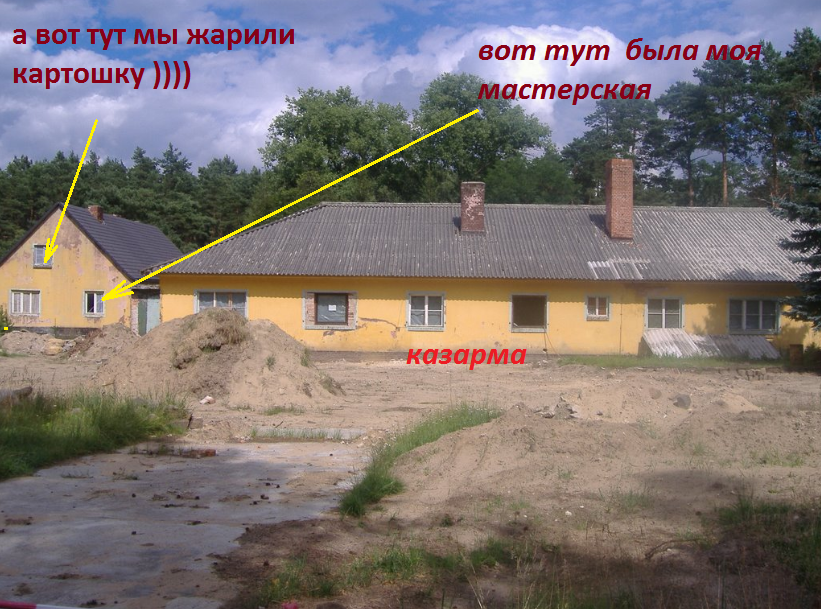 А я последние полгода был художником - оформителем в нашей роте .:D:D:D Лафа , отдельная комната с замком , на должности сержанта ( а это 55 марок , против 28 у рядового ) и это при "чистых" погонах (чуть ефрейтора не дали перед самым дембелем o_O - удачно стрельнул в пульт:oops: ( это такая хрень перед караулкой , с ложементами для автоматов , где происходит заряжание-разряжание ) спросоня , после 4х суток подряд в карауле шмалянул ) , в караул разводящим - там свои прелести :D:D:D . На фото - то что осталось от части сейчас . 85 % построек - немецкие 39 года .