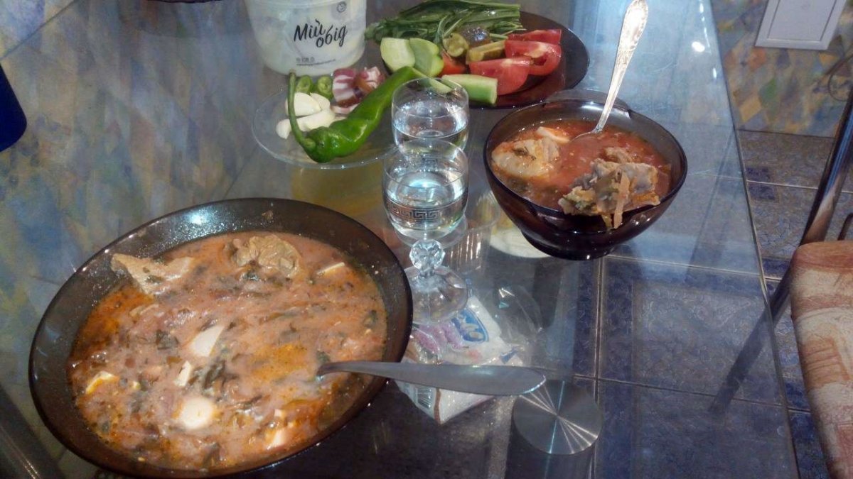 Пожрать не пора ли? сигодни будем давиться борщом зеленым, т.е. с айцами и щавелем: Водки не хочу. Но сила воли есть, и я заставлю себя употребить румку грапы.