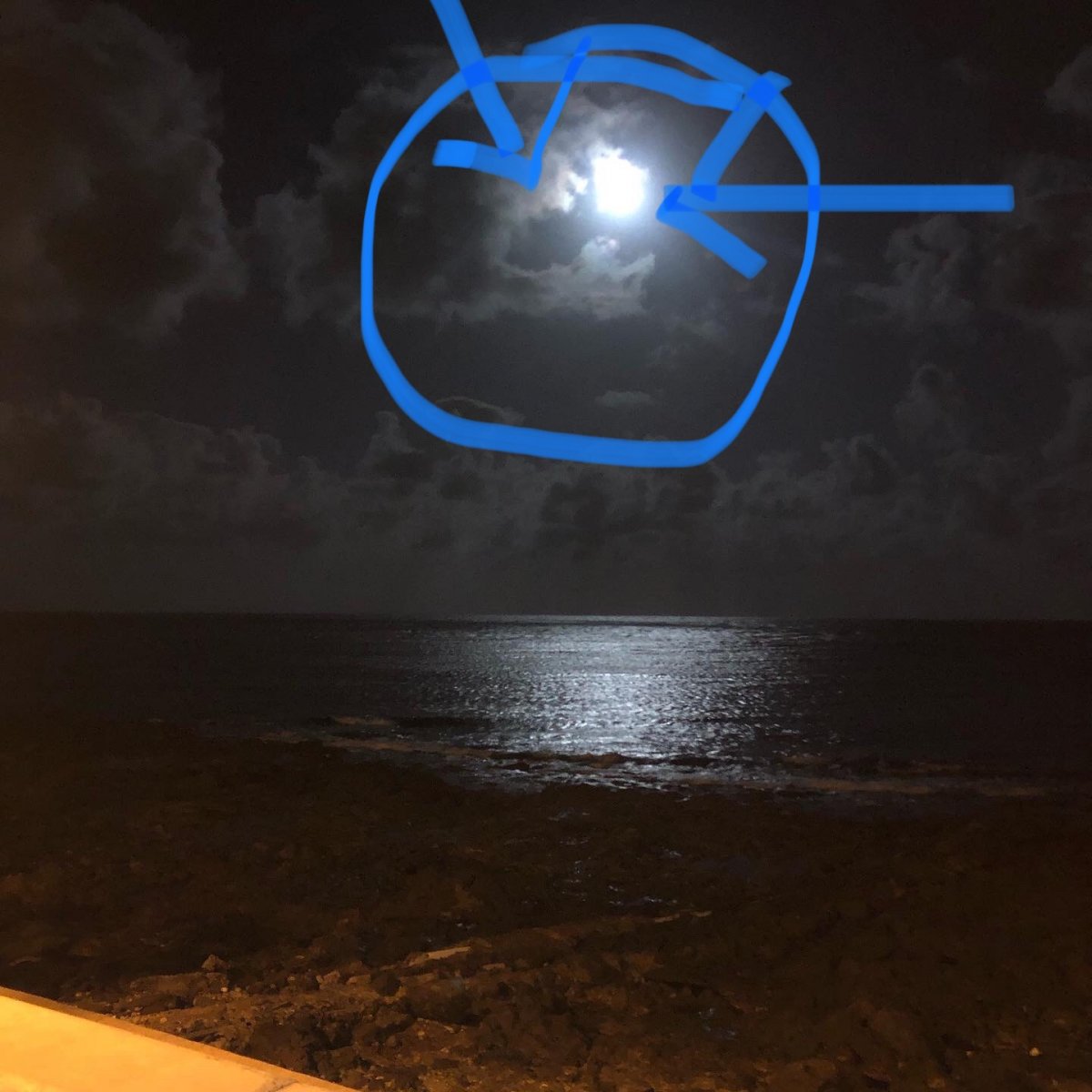 Подскажу : Слева от Луны чёрт нагнул голову ... Там просматривается и причёска и глаз и нос и рот ... А под Луною его же рука .... Не ну я так бачу