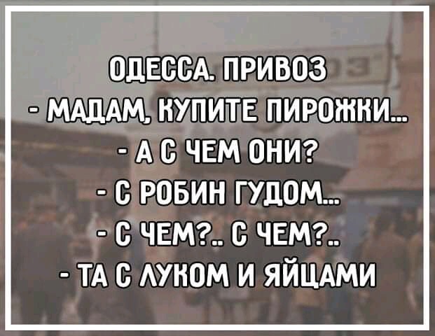 Вспомнил детский анегдот: Пирожки бегут за Булочкой, а она тикает от них со всех ног! Пирожки ей кричат: -- Булочка, Булочка, ты нас не бойся, - мы не с яйцами! Мы с луком!!! .