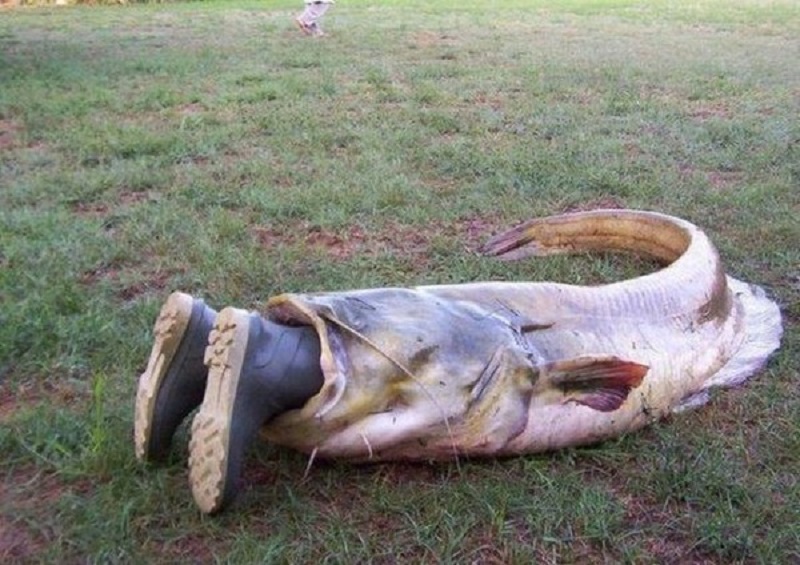 Представил себе картину маслом. Жена ждет мужа с рыбалки и тут..вносят (или ввозят ТАКОЕ на тележке)..Впятером. Сом!
