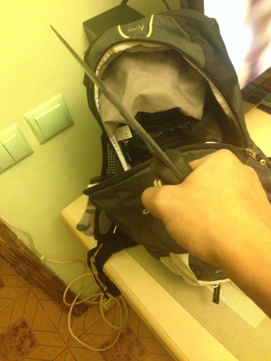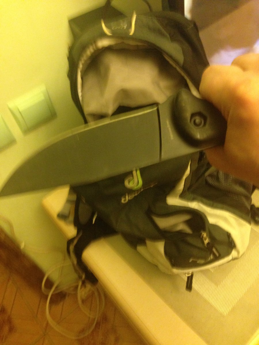 А вот мой ножик, единственная вещь неразлучная с моим велорюкзаком. Ломик бокер
