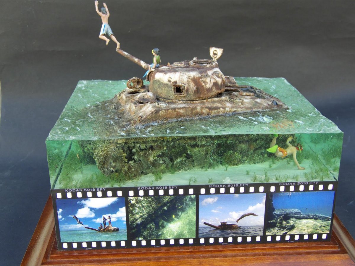 Ну пляжники на вкус и цвет,это да.Автор видимо решил,что это символично,ржавый танк и ныряющие вокруг него дети,типо.что-то олицетворяет.