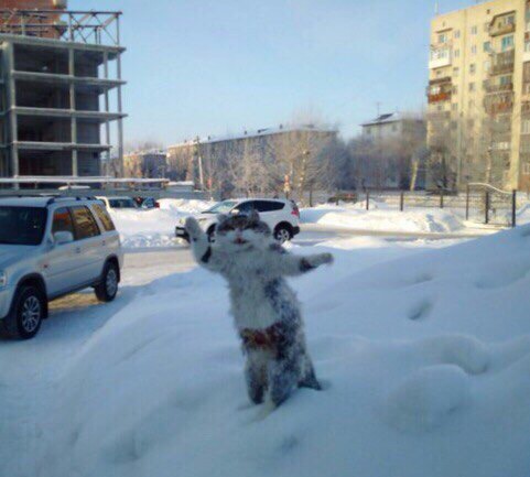 В Омске из мертвого кота сделали памятник зиме Окрашенный труп можно увидеть на территории одного из вузов города.