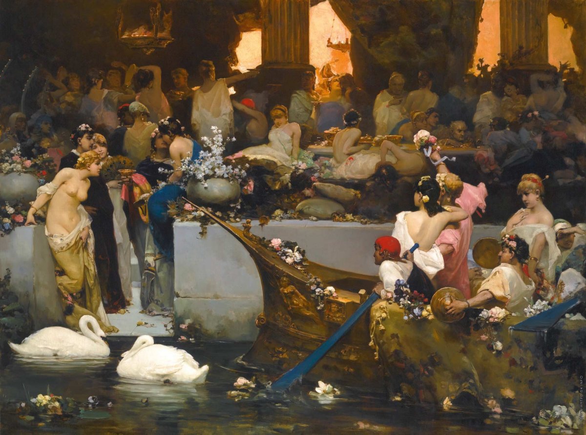 не, 100% не греки, у греков массовый бухач с развратом назывался "симпозиум" и был более буйный. Во время симпозиума могли и правительство сковырнуть. А тут явно патриции расслабляются. Лоббисты-коньюнктурщики.