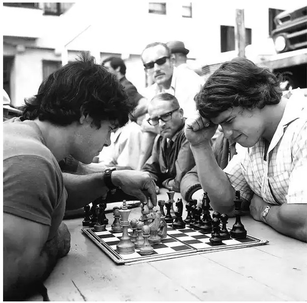 "Я его фигурку смерял оком, И, когда он обьявил мне шах, Обнажил я бицепс ненароком, Даже снял для верности пиджак. И мгновенно в зале стало тише, Он заметил, как я привстаю... Видно, ему стало не до фишек И хваленый, преславутый Фишер Тут же согласился на ничью." - В. Высоцкий