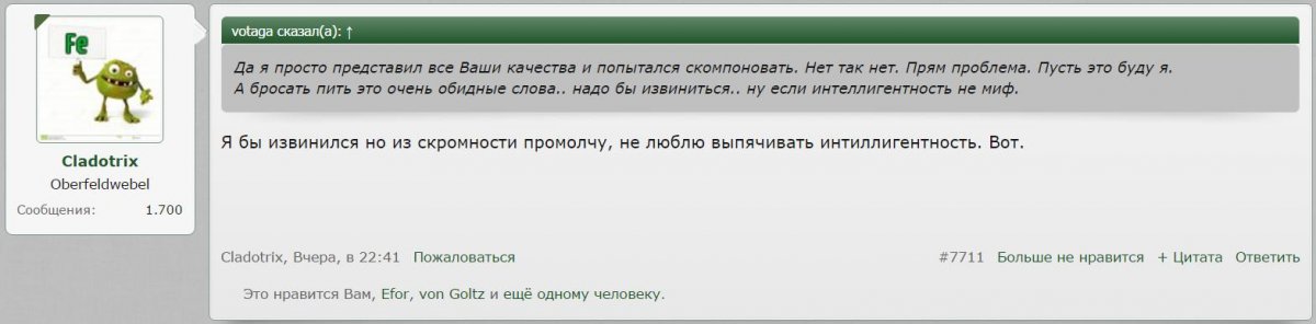 Это о чем?[/QUOTE] О фобии. Не знаю как называется, потом гляну. Ну, когда человек боится извиниться при собственной неправоте, находя причины, а часто их выдумывая, чтобы не извиняться.
