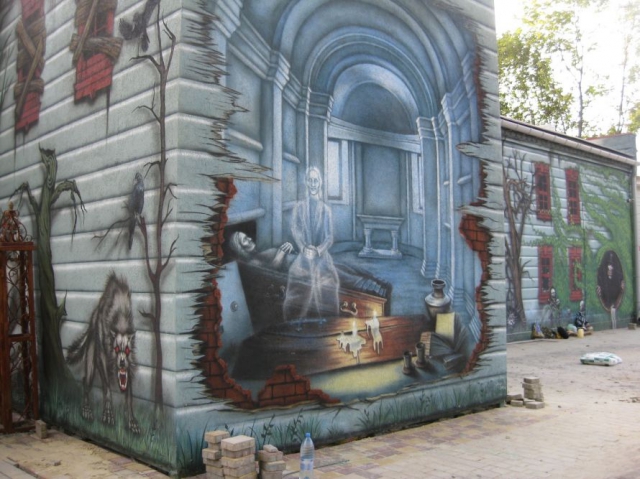 Инсталляция в перфорированном платье справа от оборотня тоже знакома ? :)