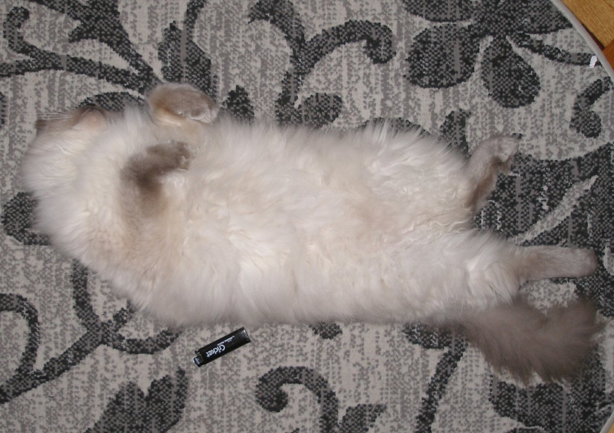 Кошку вообще хрен найдешь , кот дрыхнет на полу в такой позе . :D
