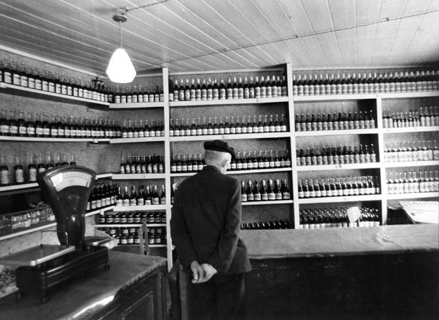 Ну что за магаз без весов? То уже не магаз, а так себе..... А вобщем, за фотографом весовой товар, селедка в бочке, сахар в мешке, масло еще подсолнечное, тоже в бочке, такой трубой-помпой качать, в баллон трилитровый.....а сахар в наволочку...во житуха была....