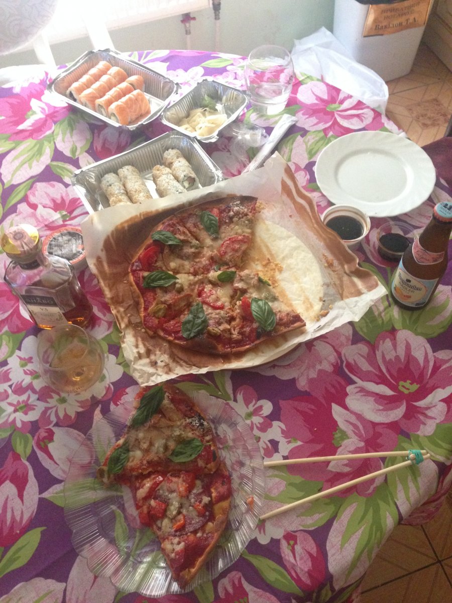 Суши - руками , пиццу - палочками учебными . Коньяк запивать только белым пивом !