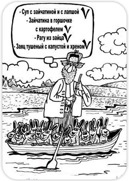 \ снова все попрут пьяные с рушницами наперевес, в трениках и несвежих рубашках, загонять зайца в круг по 50человек, с номерами, передвигающихся на жигулях, всё что сидит-летит-плывет-спряталось будет уничтожено ... капец