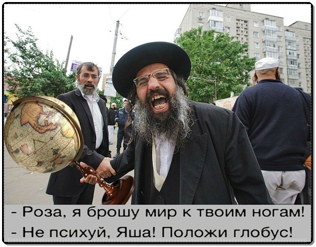 Возвращается старик, смотрит, вместо дома какая-то развалюха, на месте машины -ржавый велосипед со спущенным колесом, а там, где была стиральная машина стоит разбитое корыто. А на корыте лежит записка «Пошла до жидов белье стирать».