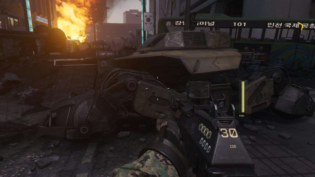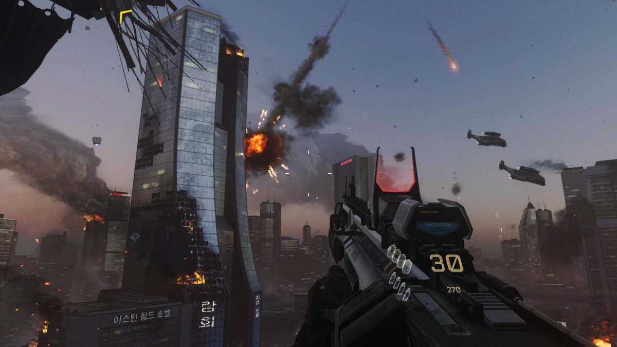 Карлис, в Advanced Warfare ещё не бегал? По сравнению с Призраками - нормальный, толковый Call of Duty. Кстати игра на год позже, а идёт на компе куда лучше и бодрее, чем предыдущие Призраки. Короче я бы советовал. Картинка круче, и ресурс не жрёт: Короче Сеул какого-то там 2055 запупенного года или типа того, чучхеисты решили отжать Daewoo и Самсунг, даём отпор: Чучхеистский суперкалаш середины 21 века: Подсветка целей, очень удобно. Коммунисты суки додумались, а продвинутая демократия ещё нет: Зато наши турели теперь на колёсиках: Короче круто пока, только начал. Но пока круто.