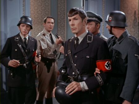 Там такие-же нацики 23 века, которые сами по телику левой пяткой воссоздали 10й рейх свой на краю галактики, так что если по сути, то к форме в сериале претензий вообще нет:)