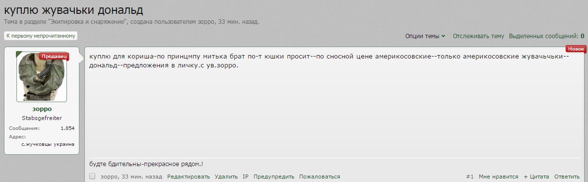 Какую многообещающую тему я только что в разделе "Снаряжение" грохнул.