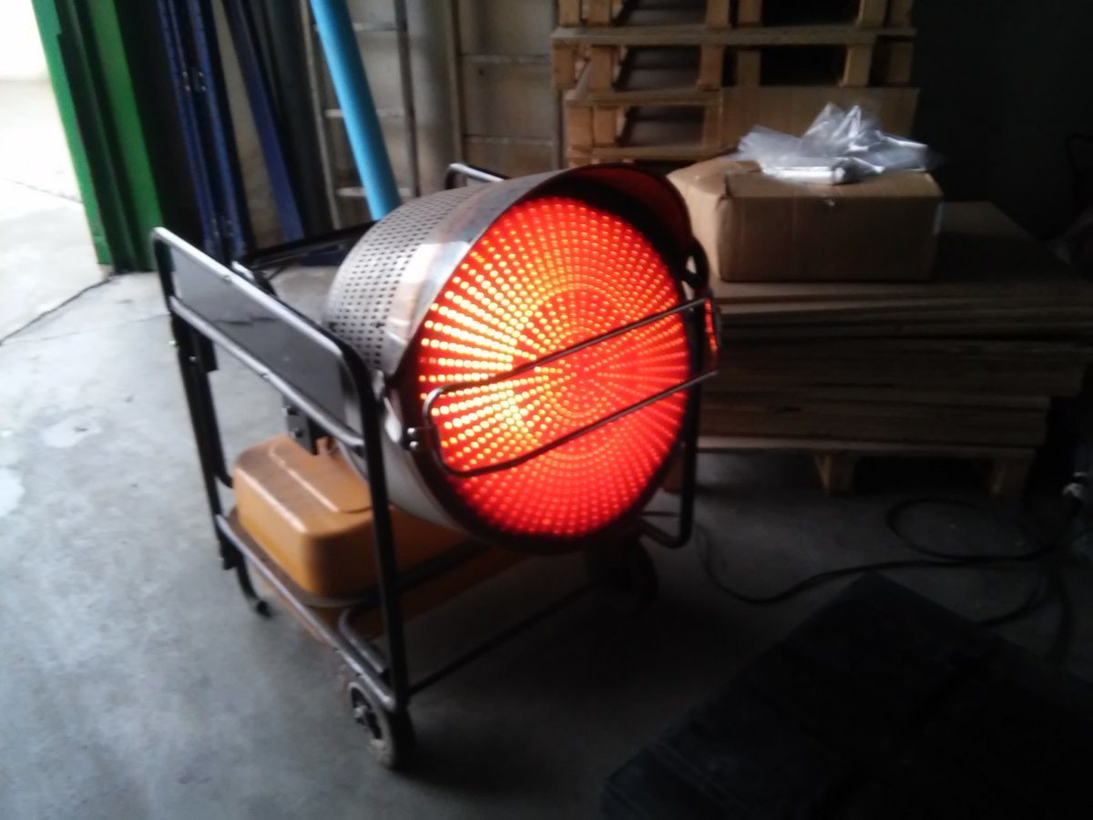 Добрейший . Конечно выжигает всё нахрен... Потому и ворота открыты. Она короче на соляре , плюс пропеллер на электричестве, разгоняет огонь . Это короче , шоб бетон сушить. Но я сушил контейнеры из пенопласта.