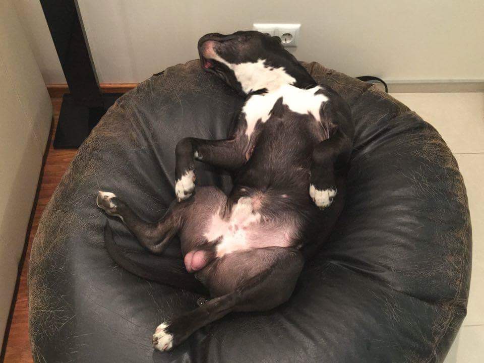 Любимая поза когда спит,ели ,ели отучили чтоб с нами не спал,пришлось ему в каждой комнате по лежаку оборудовать