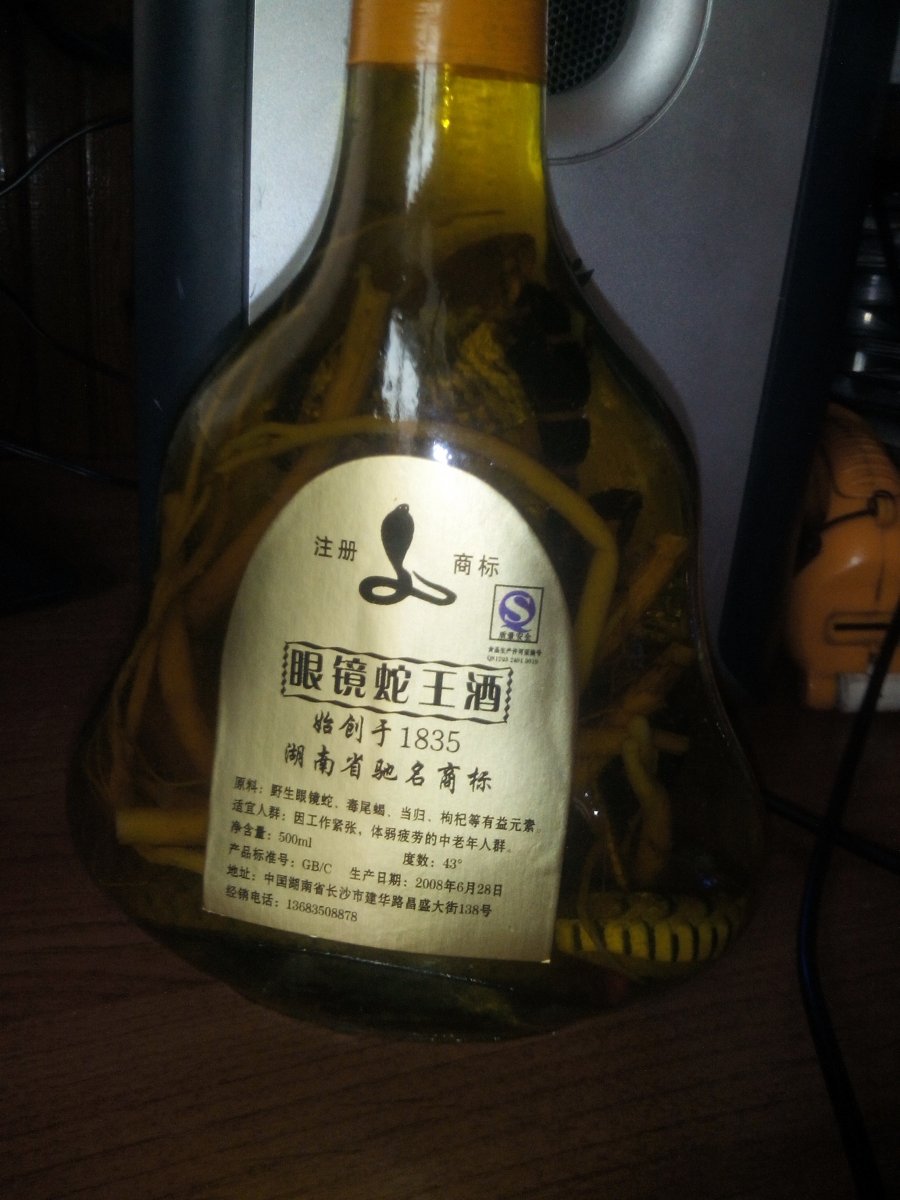 В молодости как то бухали и бухло закончилось... Открыли такую только со змеёй... Ещё и бутылку кокнули . кто то змею как воблу пытался шелушить... В общем блевали потом.... Да и в еропорту щас такие сувениру отымають..