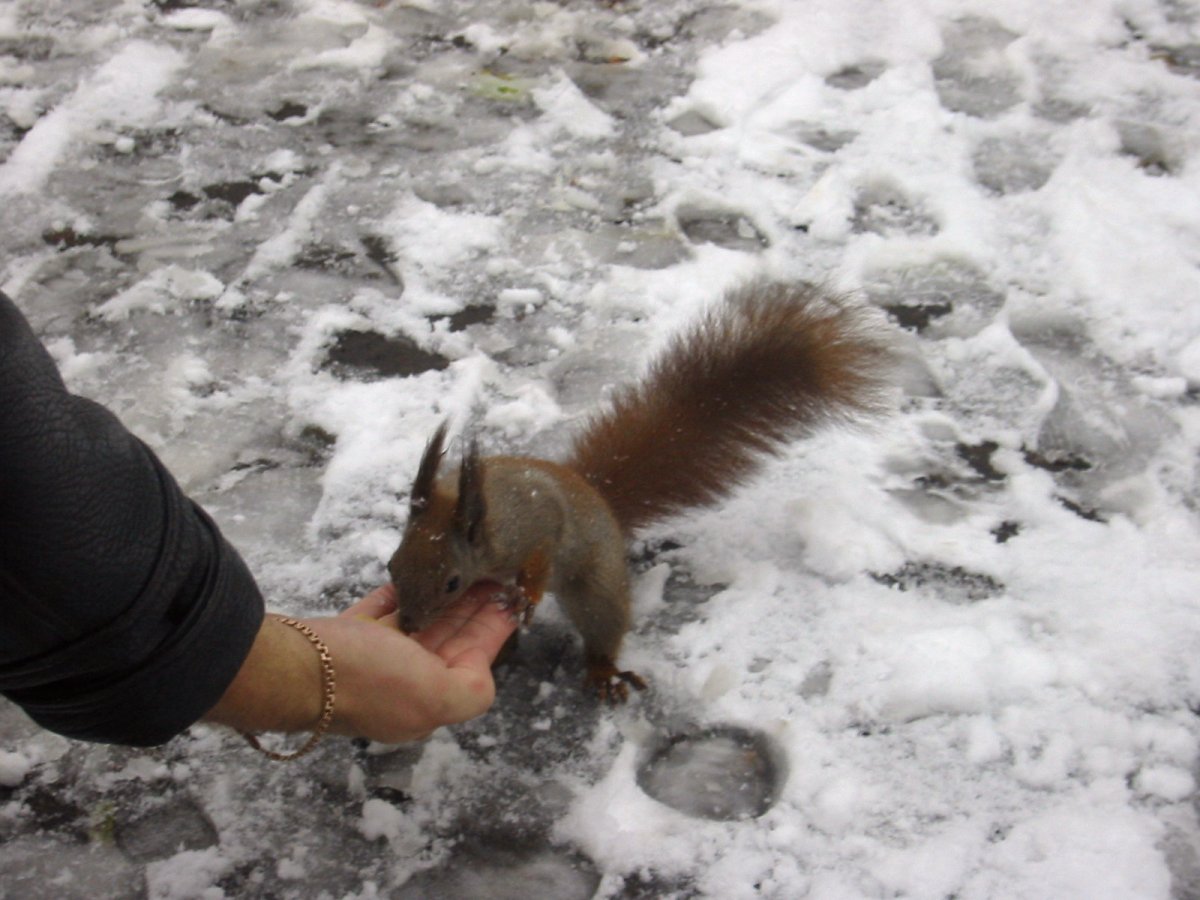 Белочек любить и кормить нужно...Как я к примеру...Тогда они сами приходят...