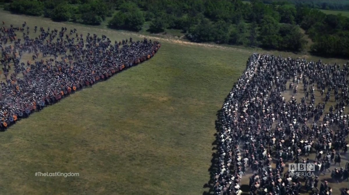 Досмотрел Королевство. Разочарован. Битва при Этандуне поначалу хороша была реально, а потом всё вырезали, выпилили и почикали. Минут 5 всё было. И сразу опа - Гутрума крестят. Битва же целый день шла, саксы за данами ещё километров 5 гнались и в крепости закрыли. Через две недели тощие голодные викинги хендехох сделали. А тут пять минут на такое событие... Зато всякие раздупления главных героев полсерии показывают. Начало реально хорошее, массовочка гут, столкновение стен щитов: